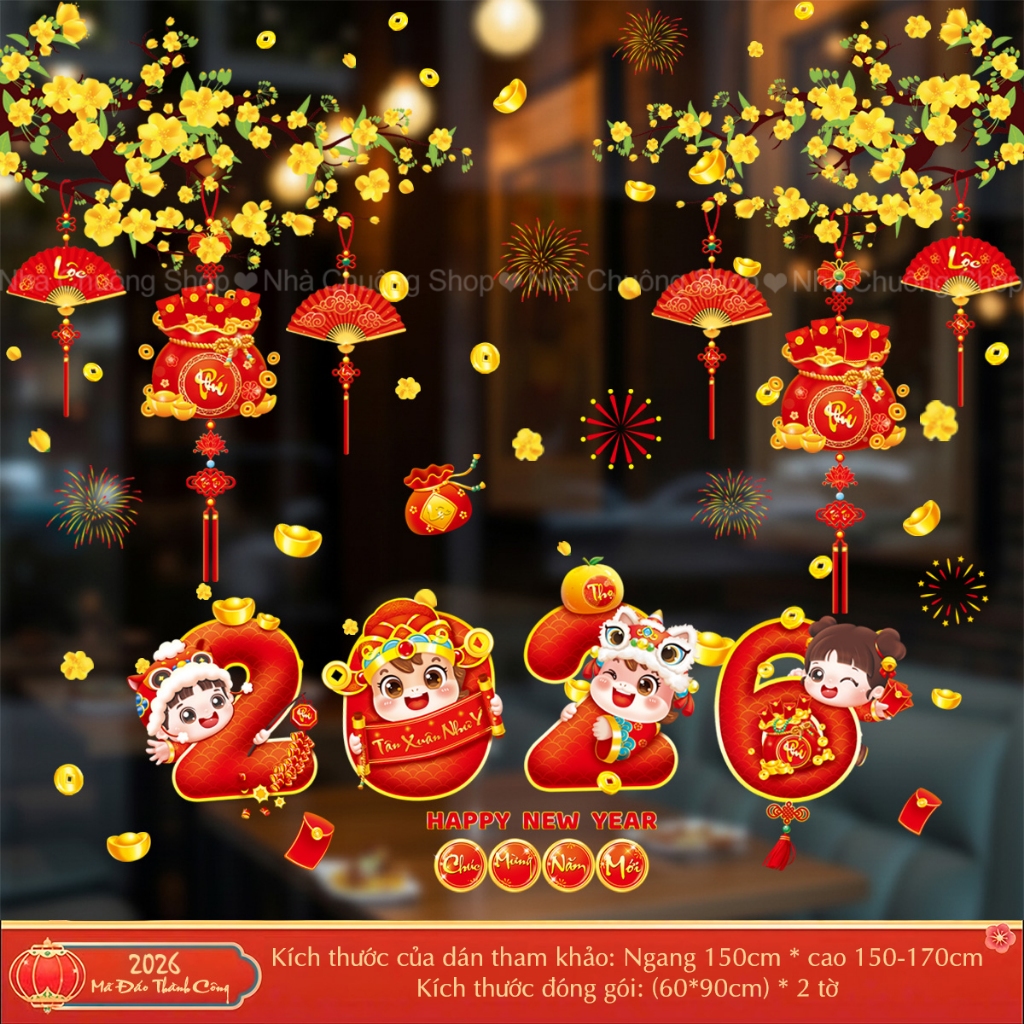 Decal Tết 2026 Trang Trí Năm Mới Bính Ngọ