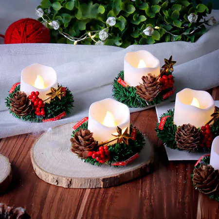 🔄 Variation: Nến Điện Tử Giáng Sinh Hoa Thông Dùng Pin Trang Trí Noel.