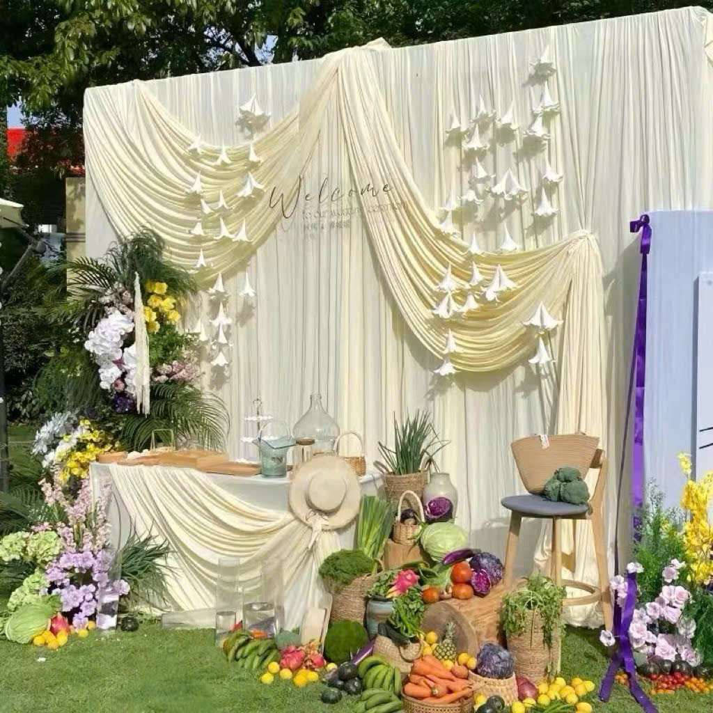 Rèm Vải Thun Lạnh Màu Kem Trắng Khổ Rộng 1m7 – Đã May Sẵn, Dùng Trang Trí Tiệc, Cưới Hỏi, Sinh Nhật, Background Chụp Ảnh