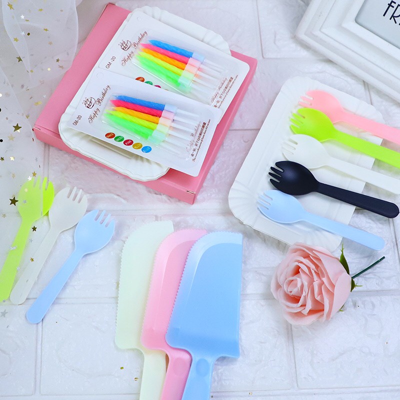 Tên sản phẩm: Set dao, dĩa, nĩa kèm nến ăn sinh nhật dùng 1 lần